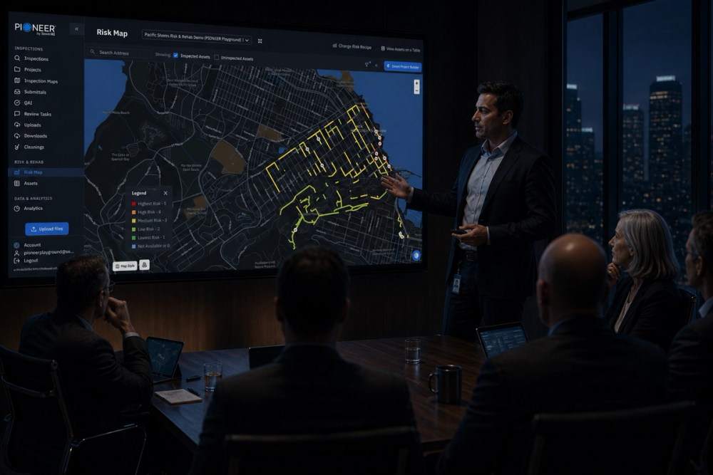 Acknowledge the limits. Another board member flagged the garbage-in garbage-out concern out loud: "A program's only as good as the data you feed into it." Davison didn't deflect. He agreed — and he was right to. A program is only as good as the data fed into it. That's exactly why SewerAI is a cloud platform built around data standardization in the first place: so the way every inspection gets captured, formatted, and stored is consistent, no matter which operator ran the truck or which tool was on board that week. Davison then named the specific pipe that would get re-inspected first — segments near recent directional boring damage, some of which "takes years before we discover" the downstream consequences. Credibility gets built on what you concede, not just what you claim.
